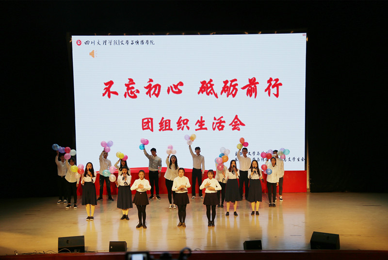 正式演出开始之前,全体人员在组织部部长张宗航的带领下起立奏唱团歌。接着,一场活力四射的开场舞为本次团组织生活拉开序幕。本次团组织生活活动形式多样,各支部认真策划准备,有逗趣的相声、激情高昂的诗歌朗诵、凝聚力量的大合唱等。2017级各支部带来的节目充分体现了“不忘初心,砥砺前行”的活动主题。其中四支部带来的《诗歌缘》充分展现了新时代祖国日益强盛的国力;六支部王冰淼同学演唱的英文歌曲《all of me》体现了当下年轻人的自信与活力。源远流长的中国历史,博大精深的中华文明被朗诵者们深情诵读,竹笛与二胡倾情演绎了民乐的悠扬与激情。此次活动在汉文一支部带来的手语舞《追光者》中圆满结束。