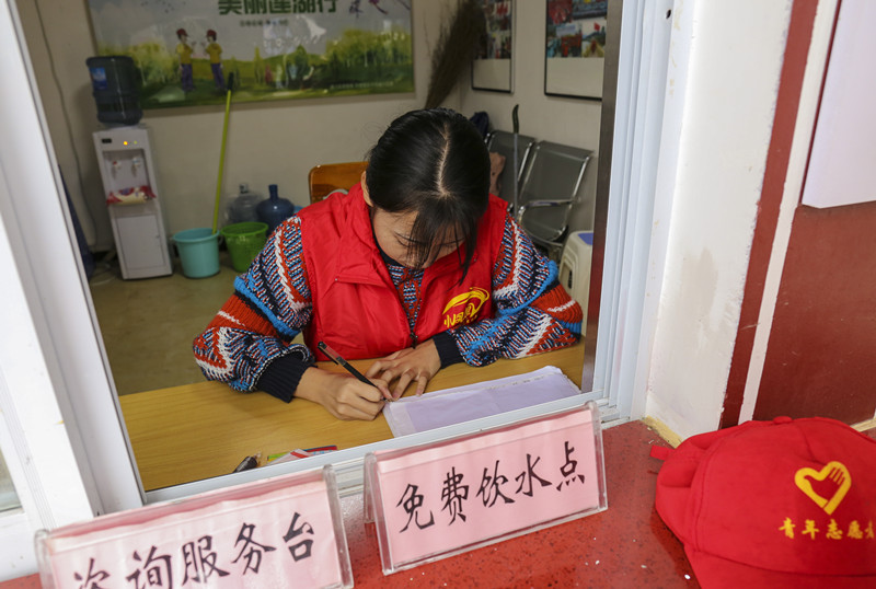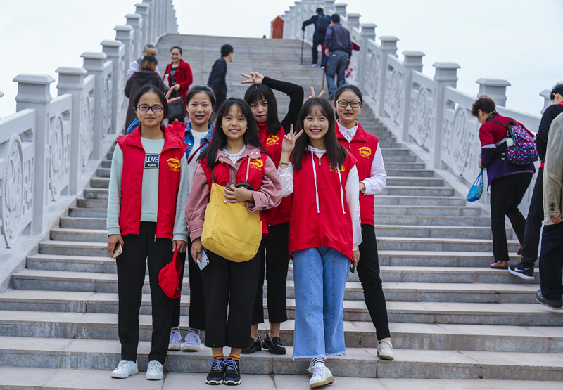 志愿者们踏着清晨的露珠,在晨风中来到莲花湖青年志愿者服务站。在换上志愿者服务服之后,志愿者们就今日如何为游客服务进行了热烈讨论讨论。在高年级学姐的带领商讨下,志愿者们决定在今天的活动中帮助游客解决游玩期间遇见的问题,劝导游客文明游玩并向游客宣讲“习近平的七年知青岁月”,从而让游客快乐文明游玩。