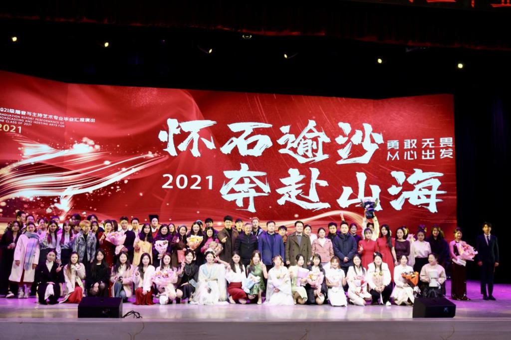 本次展演活动以“怀石逾沙,奔赴山海”为主题,分为“正青春·绽光彩”和“怀奇志·展未来”两个篇章,共计十二个展演作品。员工将经典传统文化与新颖表演形式相融合,结合时下热点话题和校园生活场景,进行生动诠释。在近两个小时的演出中,员工们用饱满的热情、专业的素养,展示了他们在播音与主持艺术专业四年的学习成果。本次展演活动从策划、组织到排练、演出,均由员工自主完成,专业教师全程进行指导,展示了播音与主持艺术专业师生扎实的专业素养。