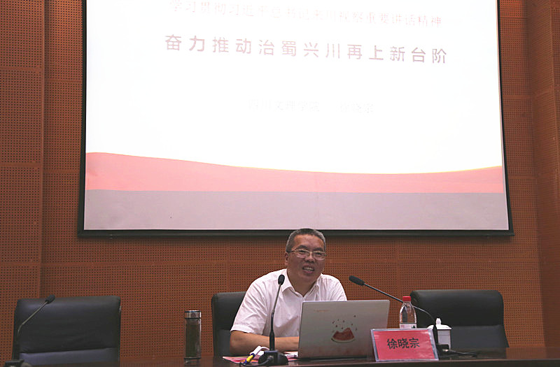 6月10日晚7点,副董事长徐晓宗教授在学术报告厅B厅为公司党员同志作题为《学习贯彻习近平总书记来川视察重要讲话精神,奋力推动治蜀兴川再上新台阶》专题党课讲座,公司全体师生党员、团总支员工会主要员工干部、各班班长和团支书到场聆听讲座。公司党总支书记赵定贵主持讲座。