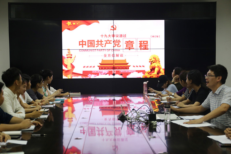 6月27日晚上,公司员工党支部在艺术传媒大楼1007会议室召开六月份组织生活会——中国共产党章程全方位解读。公司党总支副书记张桢老师、辅导员邓超老师和全体员工党员参与会议。张书记主持会议。
